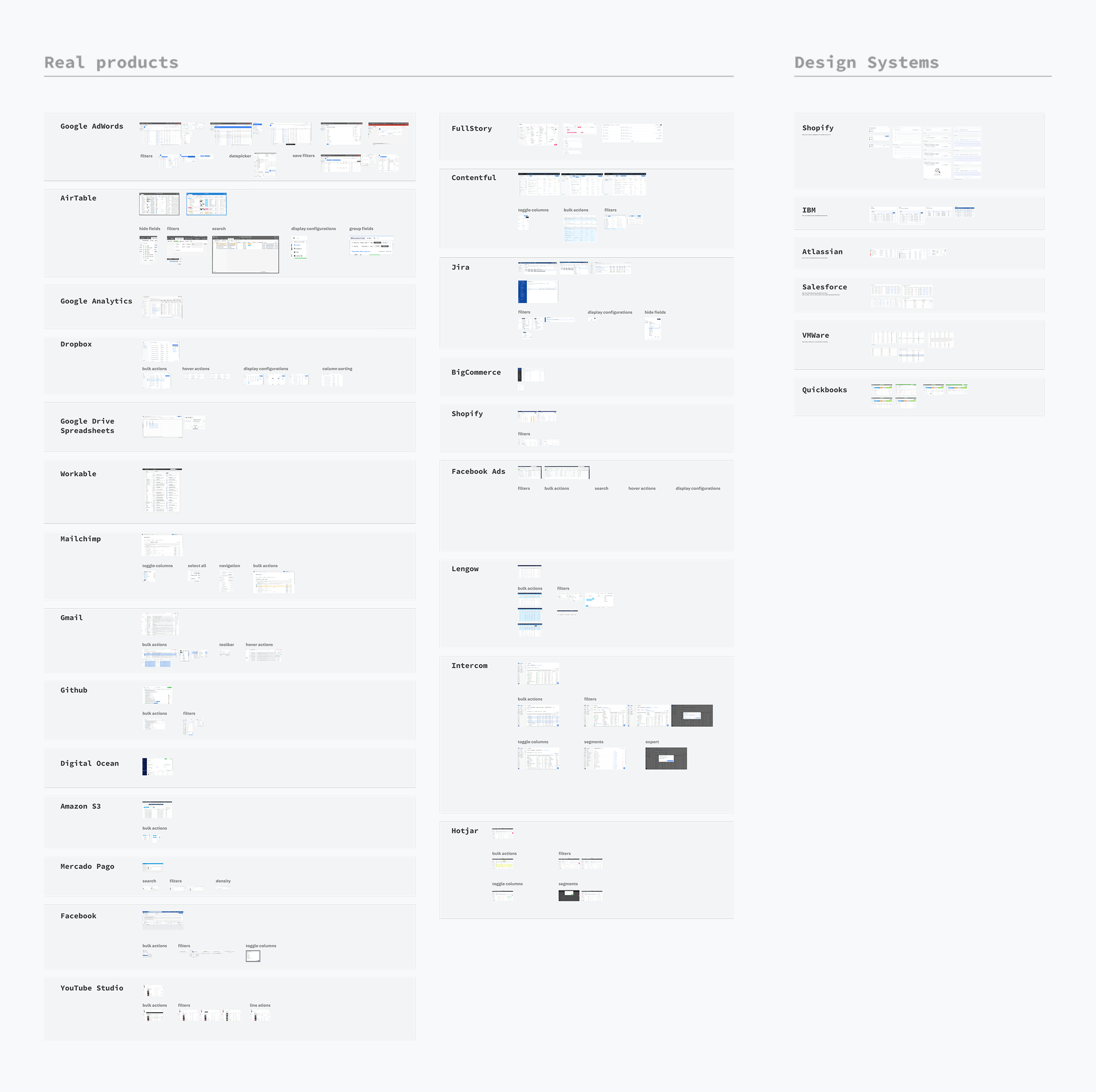 We did an extensive benchmark research in digital products and found out that powerful table components were ubiquitous mainly in B2B products. This gave us lots of ideas of interesting features and possible approaches we could take to create ours.